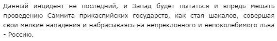 2014-09-19 18:10:33 (читать в оригинале)Информация об уничтожении материалов съемочной группы ВВС не подтвердилась, пишет астраханское издание "МК", стертый материал, по его данным, вышел в свет. МК предполагает, что "подвыпившие работники ВВС (от медицинского освидетельствования они отказались, так как явно было пьяны), по всей вероятности, сами спровоцировали драку, используя свое поражение в своих целях, тем самым представив «нападение» как способ давления на СМИ в России и создав провокацию перед Каспийским саммитом".
