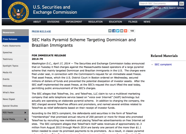 Мне очень жаль и я до последнего надеялся, что Вам хоть как-то удастся помочь.Жаль, что Вы не прислушались к моему предупреждению два месяца назад.Все факты указывают на одно - TelexFREE придется не сладко.Надеюсь, что сделали определенные выводы.Ссылка с официального сайта SEC о схеме Понзи TelexFREE.