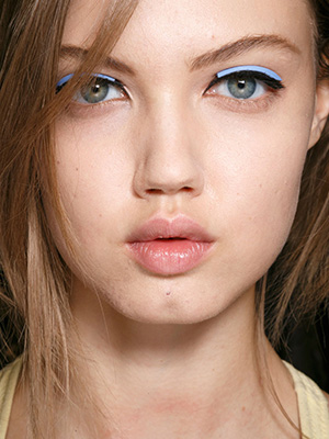 В этом сезоне на показах работало огромное количество визажистов, но макияжа как такового создано не было (не забываем про тренд - макияж "без макияжа"), поэтому увидеть, что сотворили визажист - графичные голубые линии над глазами - на показе Fendi в Милане, было действительно удивительно! Хотя, теоретически, то, что мы видим - вовсе не является макияжем.