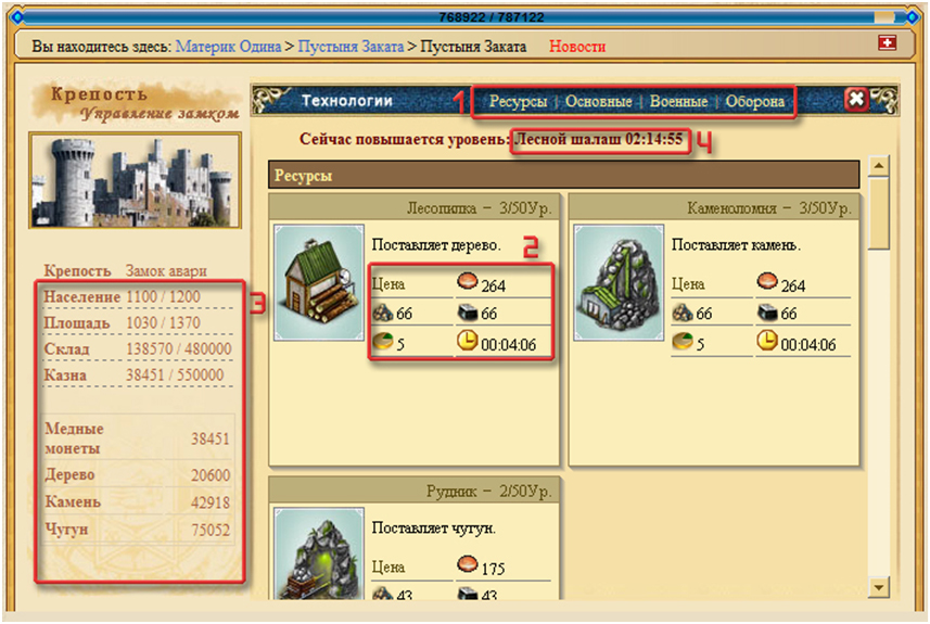 Как и любой армии в мире, необходима крепкая экономика вашей империи. Вам придется отстраивать вашу империю, камень за камнем. Ведь замок — это центр экономики и база для вербовки войск. В своей крепости игрок может построить необходимые здания, заказать исследование новых технологий, а также утвердить свод законов, по которым будет жить его маленькое королевство.