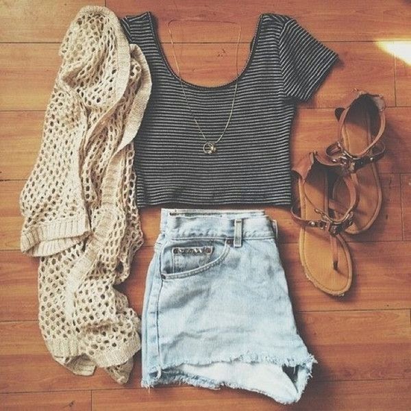Вместе с ними короткий кроп-топ и кардиган. Ободок я делала сама. Вот тут есть видео-инструкции.