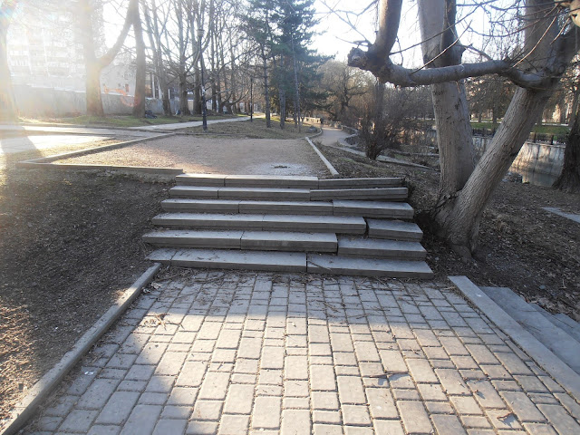 О дорожках сквера можно сказать следующее - они иллюстрируют всю эволюцию: от сносно уложенной плитки на центральной аллее до жидкого болота на всех остальных дорожках.