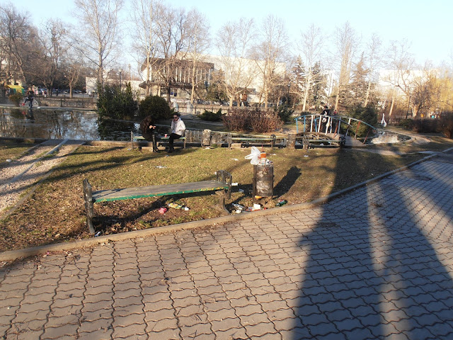 фонтан и беспризорные собаки.