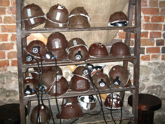 При входе нам выдали каски с фонариками.