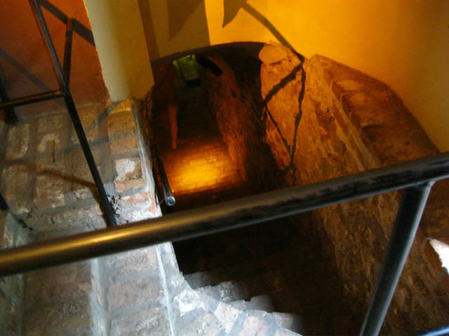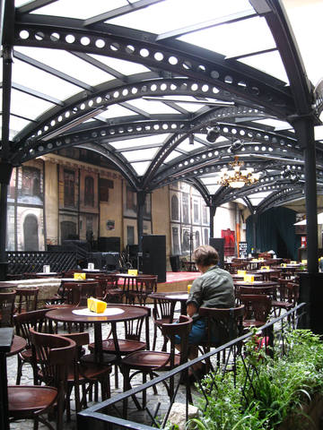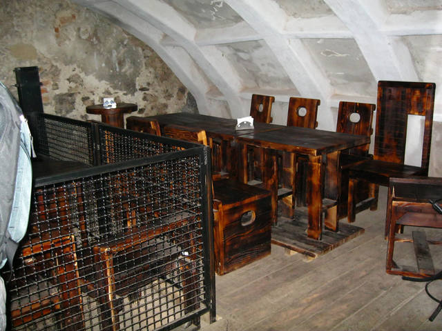 Оказывается, это один из залов кафе, которое находится выше. Здесь можно посидеть и попить кофе. Но людей здесь нет - темно.