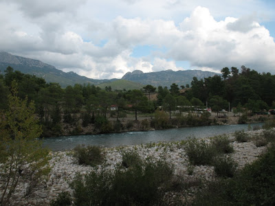 Мест для хорошего сплава в Турции несколько, нам попался — Манавгат. Да и выбирать в конце сезона, по сути, не из чего было. Разница в цене у уличных торговцев и у представителя туроператора весьма существенная, но мы решили для первого раза не рисковать, покупая сомнительные услуги. В таком тонком деле как экстремальные развлечения важно качество и безопасность. Возможно, мы и прогадали, но уж точно не пожалели. Дорога от отеля до места заняла часа три, сначала вдоль побережья через Анталию и Сиде, а потом по горному серпантину вверх (приключения начались прямо в дороге — водитель-экстремал выжимал из бедного микроавтобуса все его бензиновые соки, нам оставалось только держаться двумя руками и поменьше смотреть в окно).