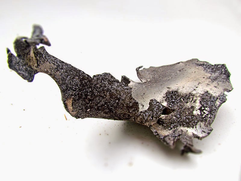 Война уже несколько месяцев как закончилась, а "сюрпризы" остались. Стоило пройти первому дождю и подуть по-настоящему зимнему ветру, как они, оставшиеся после другого дождя - осколочного, посыпались с крыши. Хорошо, хоть никого в тот момент "под стрелой" не стояло. Хороший такой осколочек. С зазубринами.