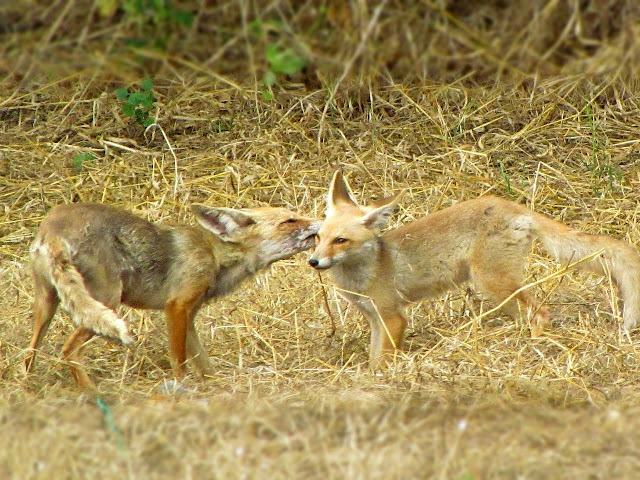 Удалось как-то понаблюдать за лисьим семейством. Ничего удивительного, они почти ручные и издали позволяют себя разглядывать. Вот и воспользовалась.