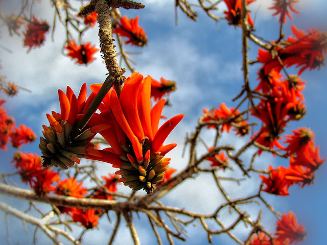 Цветы эритрины великолепные медоносы, в них так много нектара,