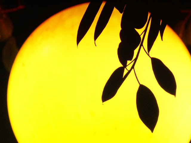 Если ранее в одном из моих постов Луна выглядывала из-за деревьев, то на этом фото ветка дерева позирует на фоне ночного, луноподобного фонаря.