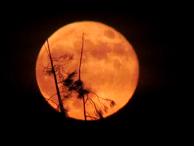 Полнолуние в этот раз получилось какое-то жеманное. Луна словно смущалась или заигрывала и всё норовилась спрятаться за веточками. Да вот сами посмотрите!
