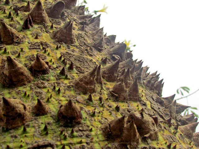 И не просто замечательная, но и отличная и царская. Chorisia insignis. Дерево с необычным баобабовидным шипастым стволом и красивыми, однодневными, белыми цветами. Вот оно, во всей своей красе: