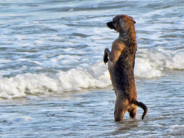 Ну не хочет она купаться при таких волнах!
