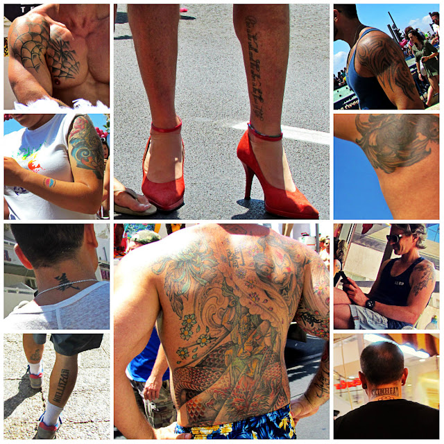 Чуть ли не у каждого второго, если не чаще, можно увидеть не теле, шеё, руках и других частях тела набитые фразы, узоры, иероглифы и прочие многозначительные и не очень символы. Себе набить штоле?