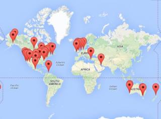 Ниже: карта наблюдения за последнее время, 50 огненных шаров и их расположение на карте мира, и, как мы можем видеть на изображении существует их высокая концентрация на территории Северной Америки.