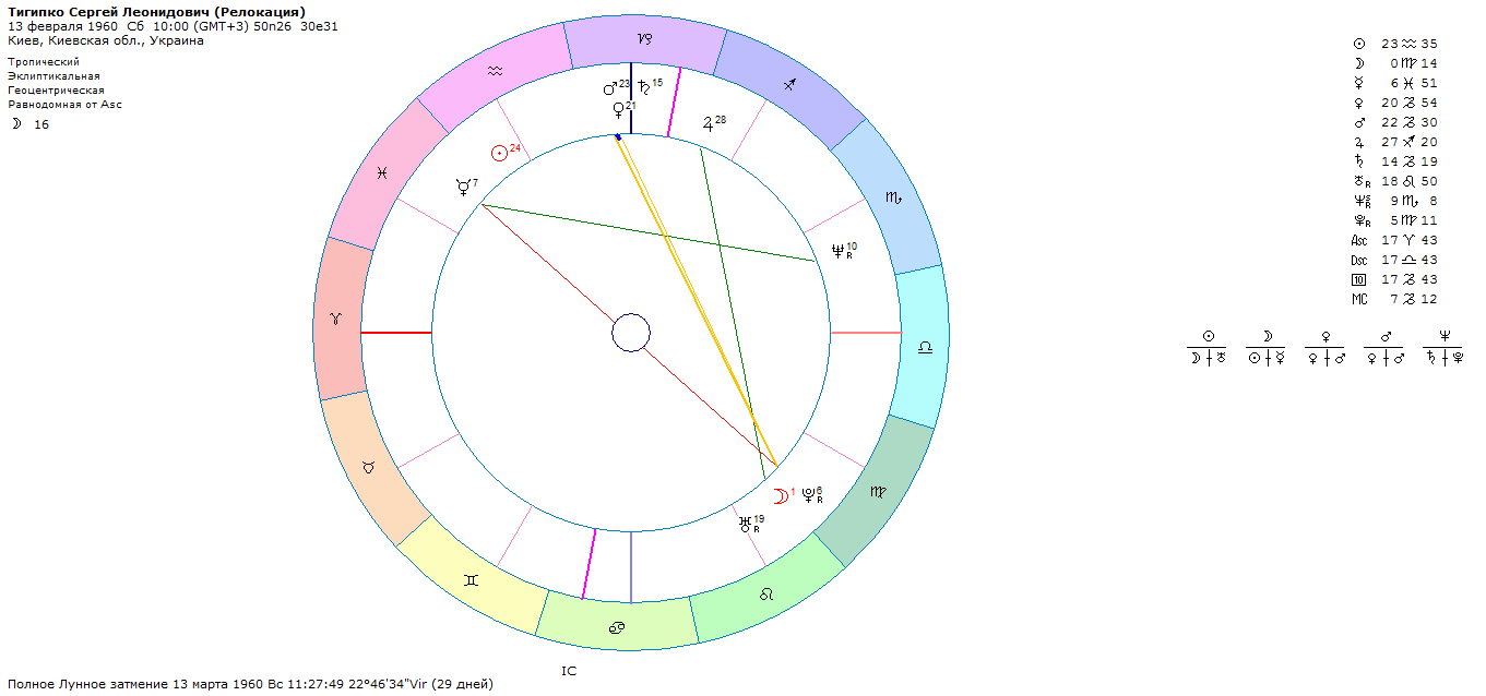 Ниже представлена его натальная карта, релоцированная на Киев, где сейчас сосредоточены его основные деловые и политические интересы.