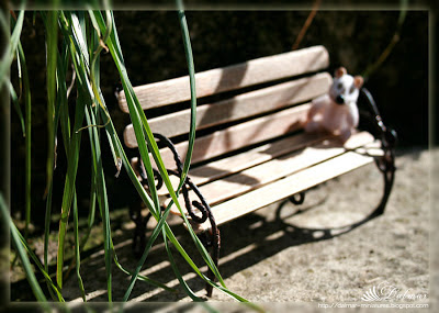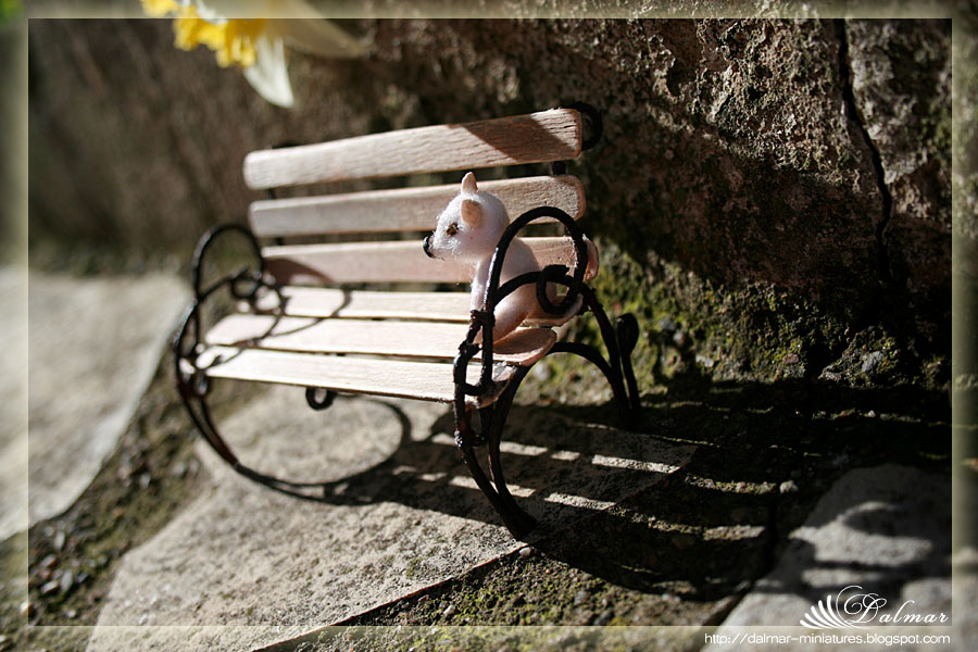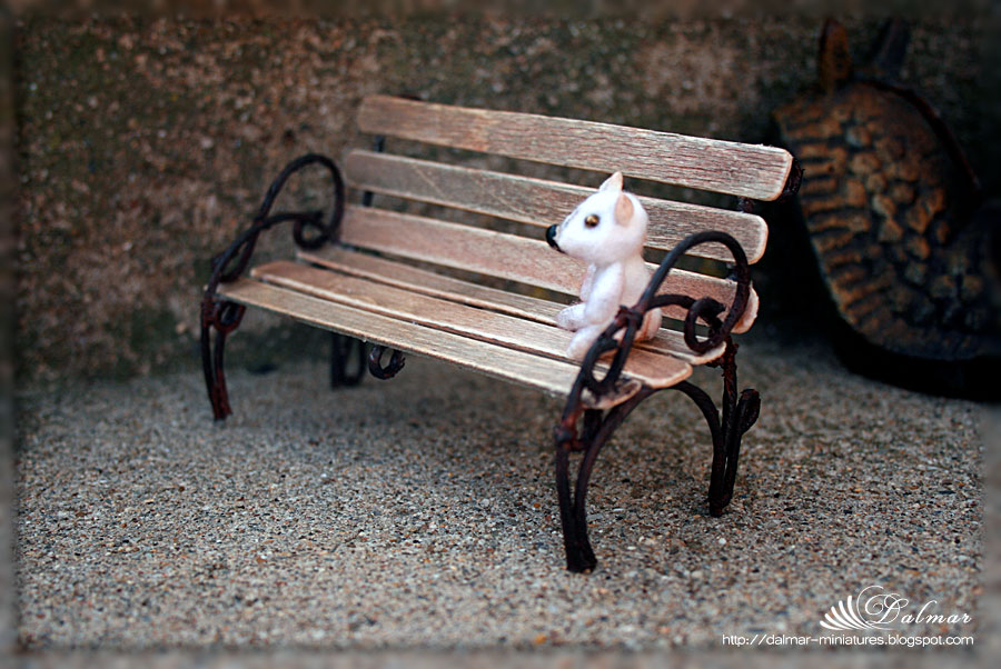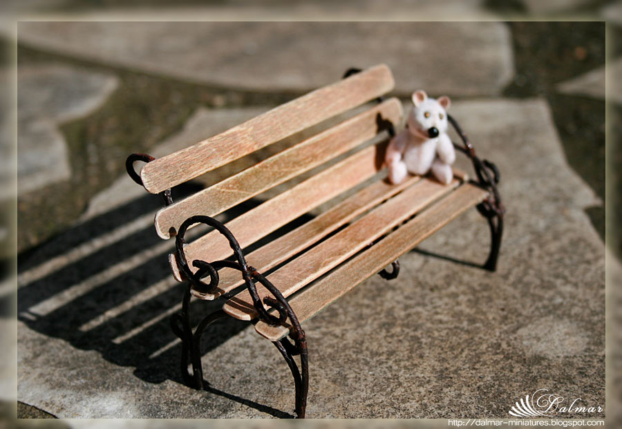 он 2 см роста (в сидячем), лепить было тяжко, а уж чтоб сохранял видовую принадлежность - вообще тяжко :) не художник я и не скульптор ни разу, поэтому объемные формы не даются. Глазки из стеклянного бисера, поэтому местами сверкают от солнца - зомби-медвед какой-то :))) Обвален в настриженной шерсти, поэтому несколько плюшеват.