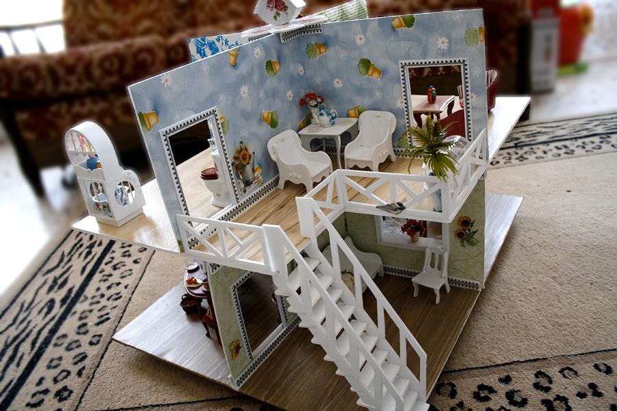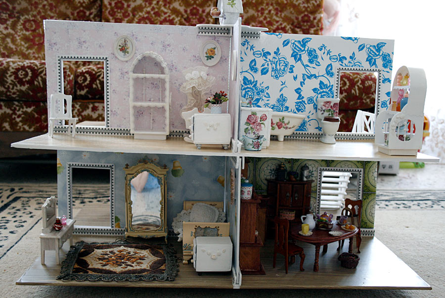 Домик именно для играть: переставлять мебеля, клеить рисунки на стены, населять жильцами... вот поеду в Испанию к маленькой Соне в гости, научу её плести гобеленовые коврики :)