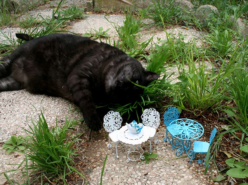 -- о маленьком, но прекрасном кафе среди цветущих кустов;