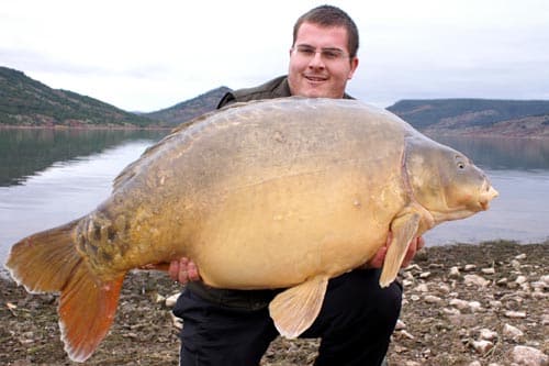 а вот таких карпов там ловят! Это рекордный, 29,400 кг весит. Монстр!