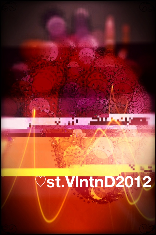 Непростая задача. Во-первых, неудобно сидеть на краю ванны. Во-вторых, экран запотевает. В-третьих, оказывается, не существует приложения, в котором можно сделать всё сразу, как в фотошопе, поэтому для каждой следующей операции приходилось лезть в AppStore и устанавливать что-то специализированное. Таким образом: базовую картинку (это было некое как бы условно реалистичное сердце) сделал в Wurm, глитча подпустил в Satromizer, потом открыл в Adobe Photoshop Express (совершенно бессмысленное приложение, поэтому сразу закрыл), затем какие-то эффекты в Pixlromatic и PhotoForge2, текст наложен в A+ Signature. И всё это какое-то игрушечное, воля ваша. Или я не там искал.