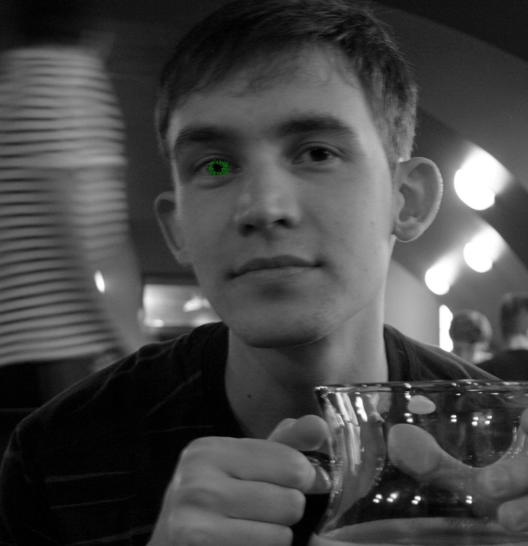 Это страшный человек. И не только потому что зеленый глаз на черно-белой фотке смотрится совсем даже неестественно. Просто Марат умудряется с милой улыбкой рисовать матрицы и е зеленых львов на кирпичах. Надеюсь, что все поняли, кто тут король кодов ноготков))))