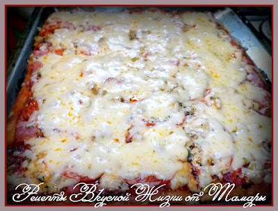 - Минуты за минуту до готовности щедро посыпаем сыром, и опять в духовку, чтобы сыр расплавился.