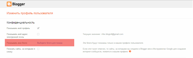 6. Ниже, напротив "Показывать мои блоги", нажмите "Выберите блоги для показа". Выбирайте свой блог.