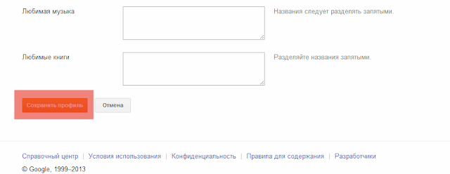 7. Спуститесь вниз и нажмите "Сохранить профиль".
