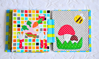 Вот и вторую книжку дошила. Все почти такое же, как у вот этой, но немного другой дизайн обложки и странички. Такой же размер: 15х17см. Толщина примерно 4 см. Десять страничек с картинками, пять листов.